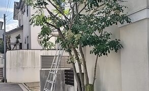 剪定 病院施設での剪定 pha53663 2024-08-18 宇治市で病院の剪定をしました 宇治市です。病院で剪定作業をししました。 病院施設での剪定 数十本のカシの生垣です。 御覧のようにかなり茂っています。これらのカシの生垣を1本1本の透かし剪定のような仕上がりにするという作業です。刈込のような剪定から透かし剪定に変えて剪定です。 また、強めに剪定してくださいとのご要望です。 病院施設での剪定 カシの木の剪定が終わりました。多くの切り枝を片付けます。 参考ホームページhttps://matui-jyumoku-mentenansu.com/ トップページに