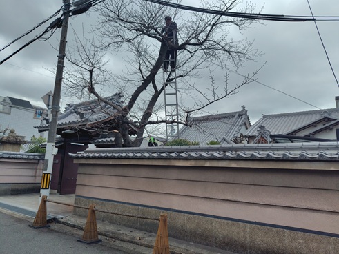大阪府住吉区のお寺で桜の剪定をしました。