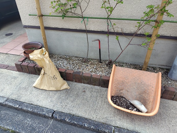 このバラは3年前に植えられたものだそうですが、その後なかなかうまく育たず、思うように花も咲かなかったようです。お客様も「どうしてだろう?」と心配されていて、そのご相談をいただいたのが管理に関わるきっかけでした。