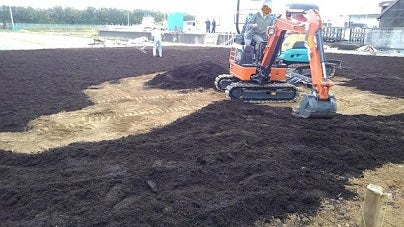 独自配合の 樹皮土壌 を使用した芝地(宇治市)